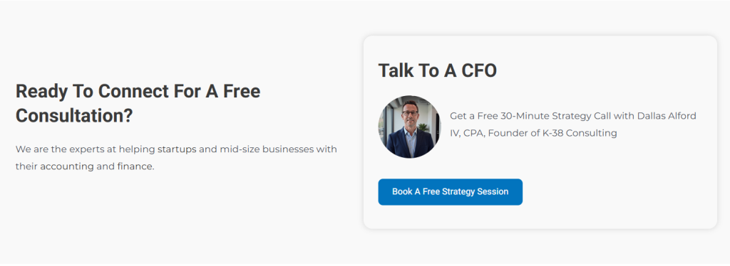 K-38 Consulting, LLC provides a comprehensive range of financial services for startups and small businesses, including controller services, outsourced CFO support, fractional CFO services, and R&D tax credit guidance.